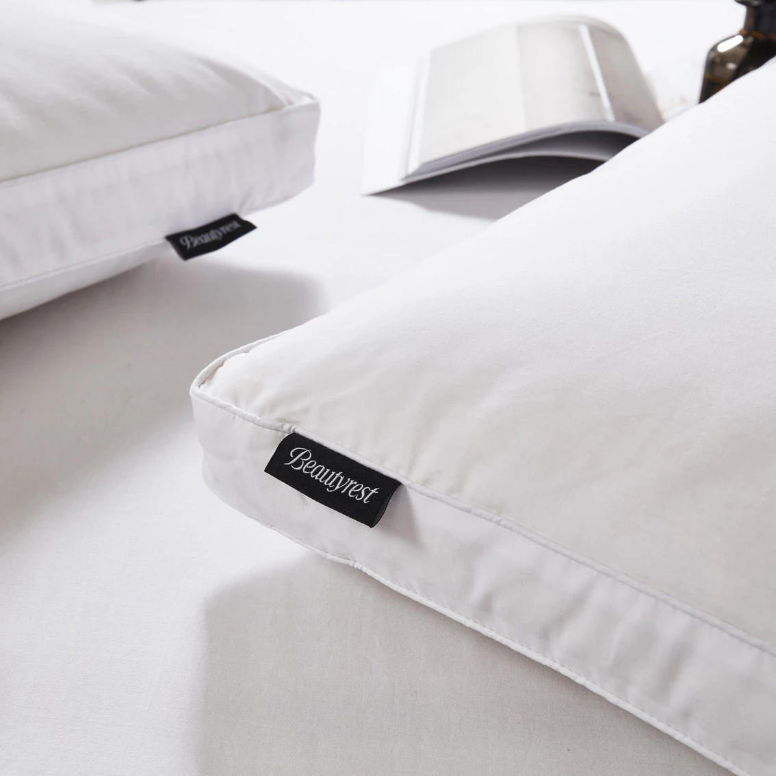Choosing the right pillow is essential to feel rested the next day, especially if you are looking for hypoallergenic and antimicrobial options. Cotton and Tencel fibers possess these inherent natural properties that make them good choices for sensitive skin individuals. Beautyrest’s natural fibers’ blend’s performance strikes the ideal balance between softness and breathability, which helps wick moisture from the skin. Model: BR20162.