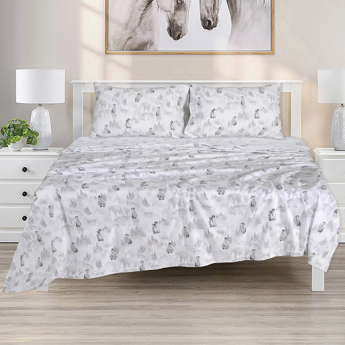 Queen size includes one fitted sheet (60 in. x 80 in.) that fits mattresses up to 16 in. deep with two side pockets (6 in. x 5.6 in.), one flat sheet (90 in. x 104 in.) and two pillowcases (20 in. x 30 in.).