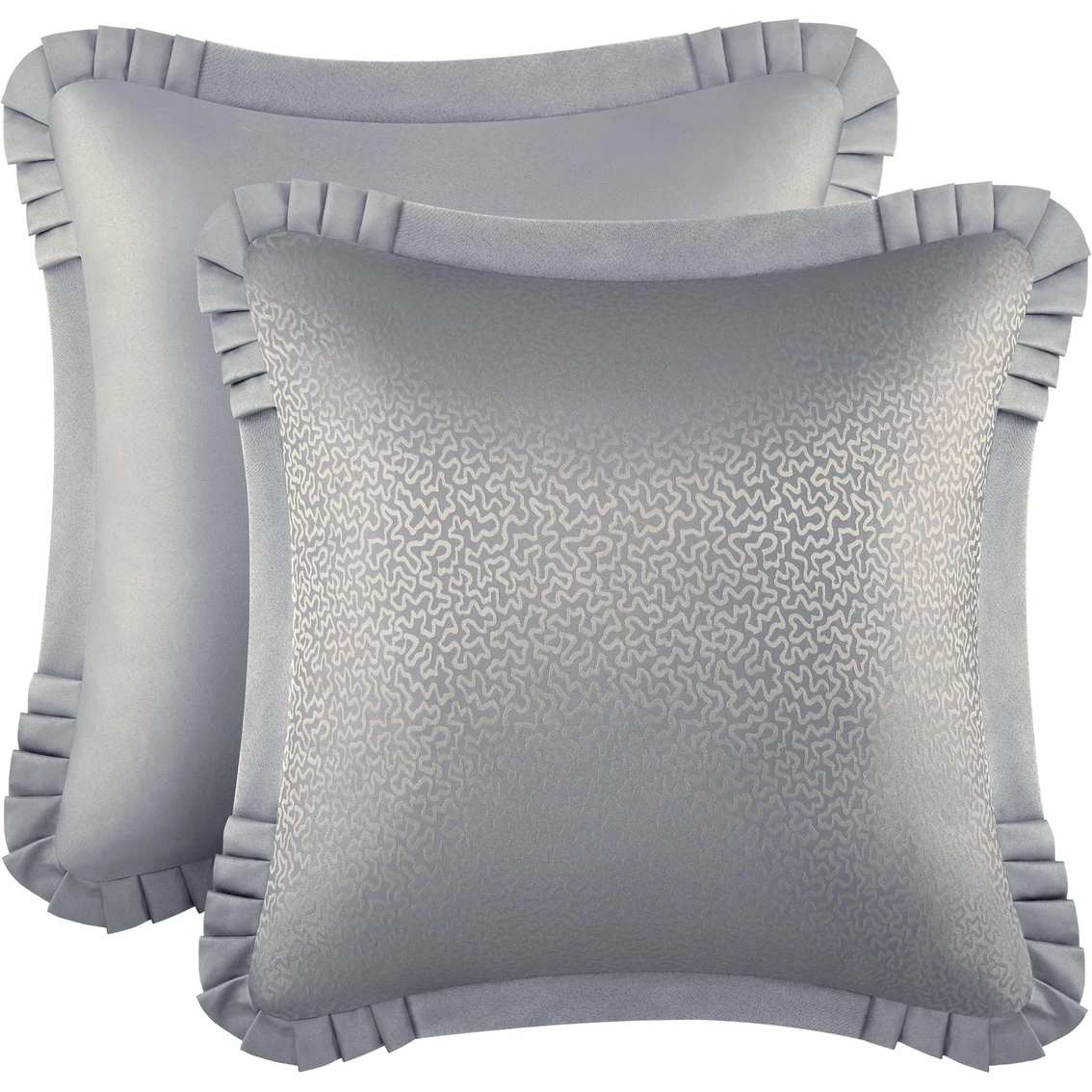 The Five Queens Court Faith French Blue Euro Sham is made of a soft woven texture and is framed with an elegant, pleated satin flange. Add comfort and luxury with this accent. Includes one Euro sham. Model: 2051120EURO.