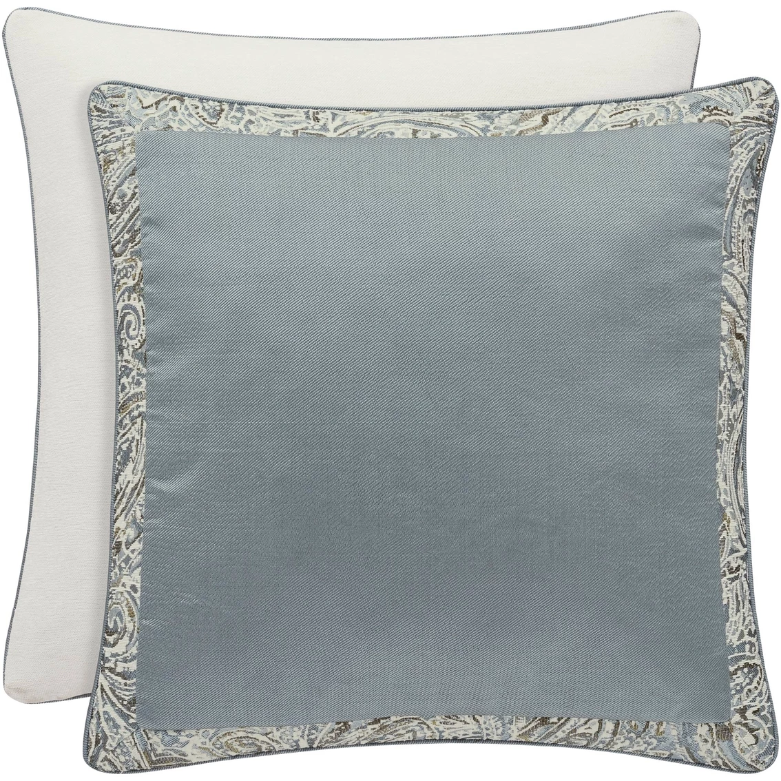 The Giovani Spa Euro Sham by J. Queen New York has a mitered design formed from an engineered border. The sham reverses to solid white chenille and has a hidden zipper. Includes one sham. Model: 2246054EURO.