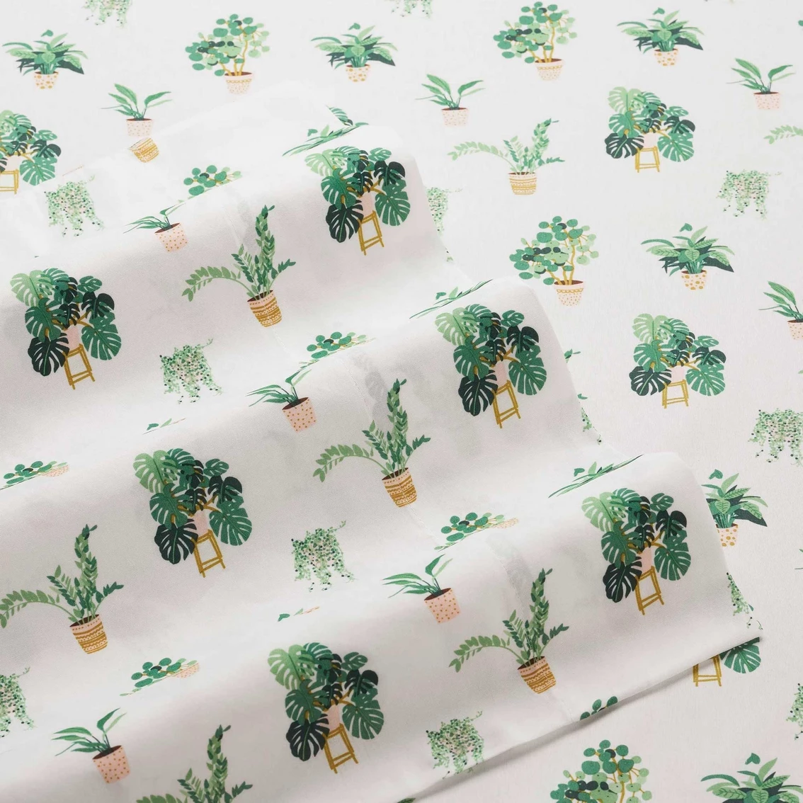 Tap into your inner green thumb with the Lemon Tree Potted Plants Sheet Set, a fresh botanical theme that livens up almost any bedding ensemble. A variety of green plants is printed on this set’s white flat sheet, fitted sheet, and pillowcase(s), adding a touch of whimsy. Designed for comfort and ease of care, items in the Lemon Tree Potted Plants Sheet Set are made of 100% polyester, so they’re machine washable, durable, and resist shrinking and wrinkles, staying smooth right out of the dryer. Twin and Twin XL sets come with a single standard pillowcase.