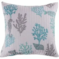 Your bedroom will boast of fresh, coastal vibes with the addition of the Levtex Home Cape Coral Euro Shams. Featuring elegant coastal motifs in soothing teals and greys, these euros are perfect for those looking for a sophisticated update and come in a set of two. Measuring 26 in. x 26 in., these euros are made from 100% prewashed cotton and are machine washable. Style: L16760SHE2.