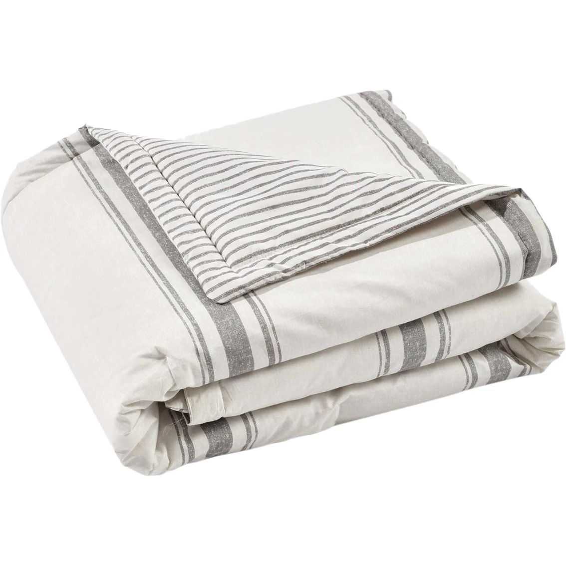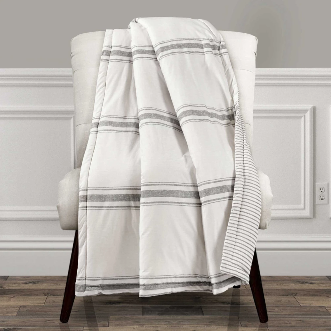 There is no easier way to add traditional farmhouse style to your home than with this reversible cotton throw from Lush Decor. The printing on the front is reminiscent of shiplap beams. The back features a pinstripe print. This stripe throw would look great on a bed or sofa.