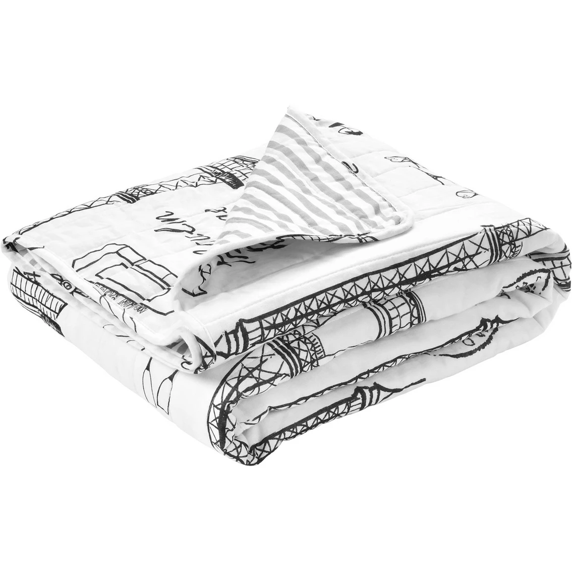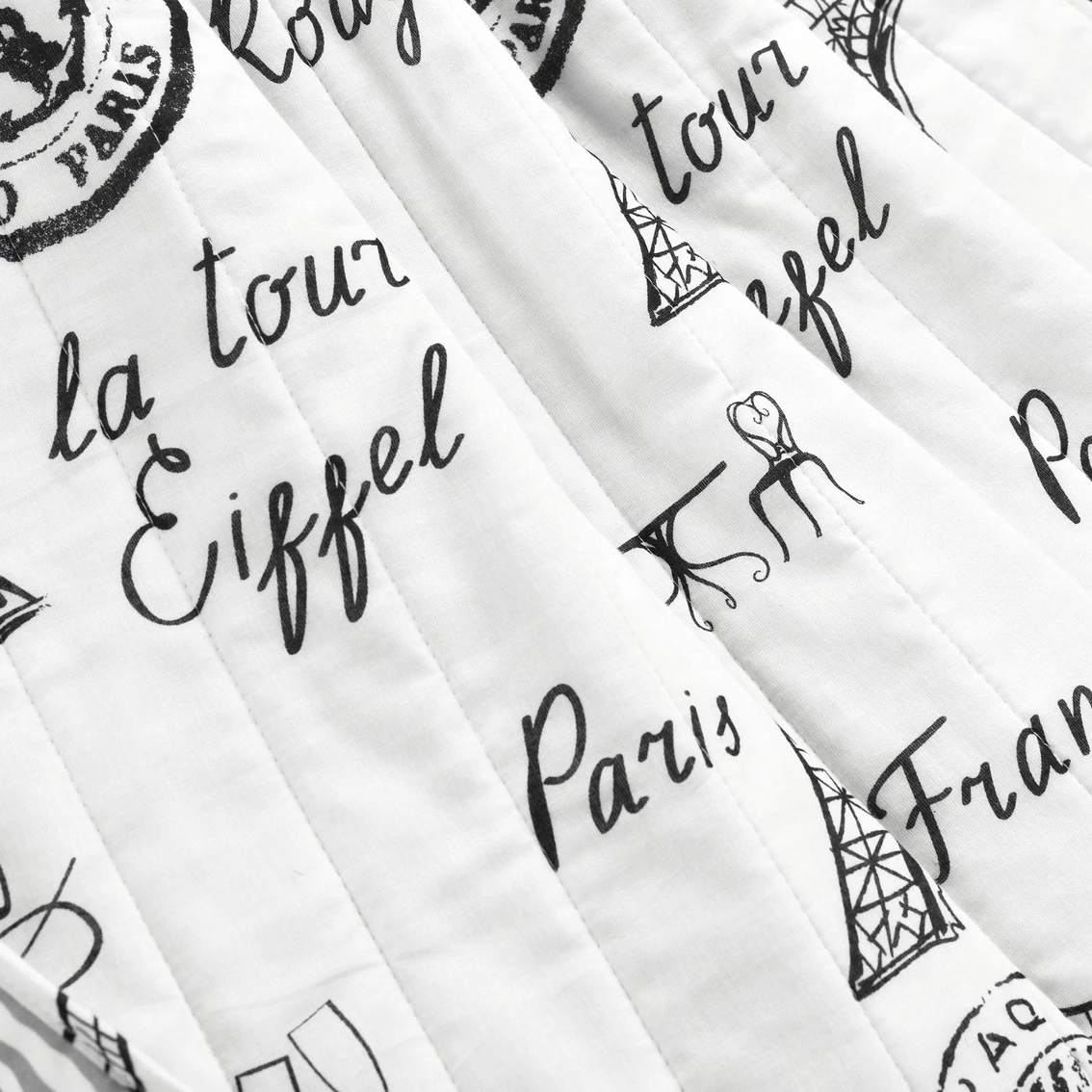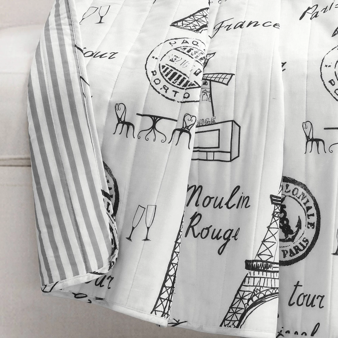 Wrap yourself up in the romance and glamour of Paris with this beautifully themed throw blanket. The black and white color scheme emphasizes the elegance of the city. This Lush Decor Paris Bonjour Reversible Cotton Throw is 100 percent cotton, making it perfectly comfortable for all seasons. Model: 21T010235.