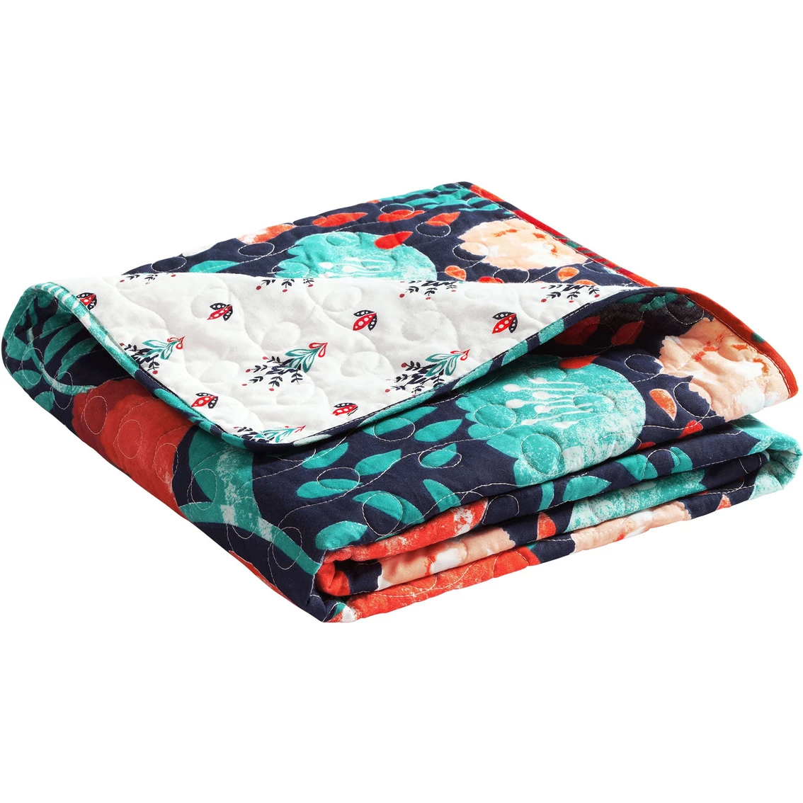 Bring the look of a colorful and thriving garden into your home with this reversible cotton throw from Lush Decor. The large poppies seem to be jumping off the fabric, their vibrant colors which contrast beautifully against the navy background. The reverse features a more subdued pretty floral print. This blanket measures 50 in. by 60 in., making it large enough to cover but not too big to transport. Style: 16T004829.