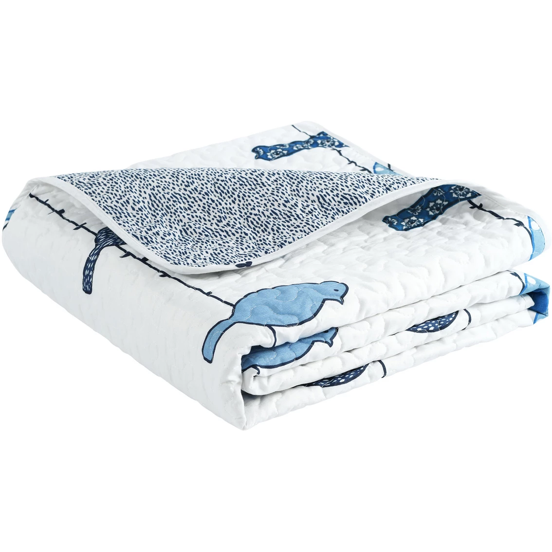 You can’t help but fall in love with the fun design of this 50 in. X 60 in. Rowley Birds Throw from Lush Decor. It features birds with boho patterns on their bodies sitting along wires, and it’s sure to light up your bedroom or living room. The reversible throw blanket features a textured look printed on the back side. Style: 16T004831.