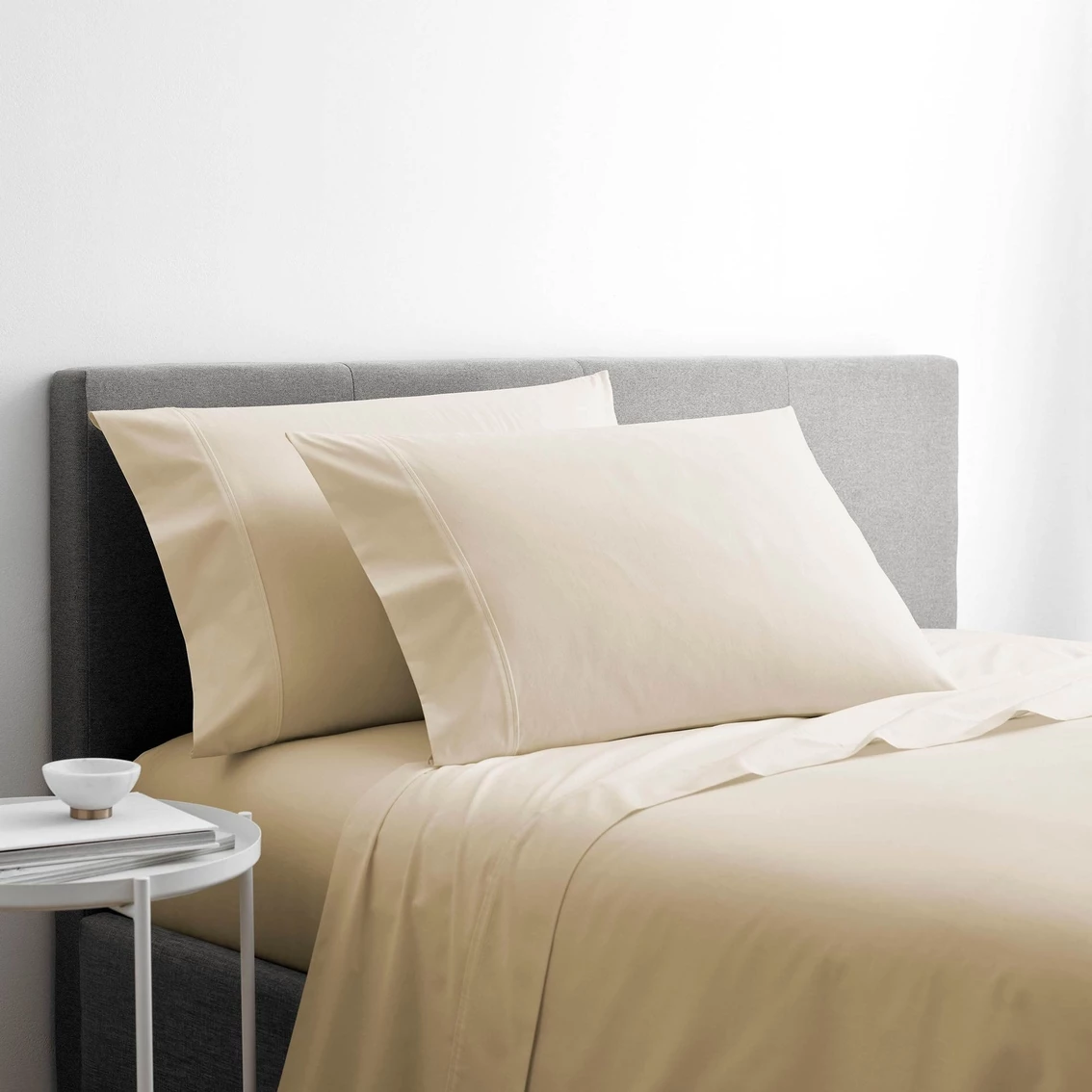With SILVERbac Antimicrobial Technology, Martex Clean Essentials Solid Sheet Sets keep your bed fresher longer. They’re fabricated with silver-infused fibers that inhibit the growth of odor causing bacteria and do not wash out. These flat sheets, fitted sheets, and pillowcases feature a super-soft feel for a comfortable night’s sleep. Martex delivers every aspect of today’s happy home, through moments of love, wellness, and inspiration. Available in neutral shades like White and Sand, plus cool hues like light Blue and Gray, Martex Clean Essentials solid sheets and pillowcases complement any decor. Sheet set includes flat sheet, fitted sheet and pillowcase(s). Available in Twin, Twin XL, Full, Queen, and King sizes. Machine wash warm with similar colors. Only non-chlorine bleach when needed. Tumble dry medium, remove promptly. Warm iron as needed. Style: 1S44371.