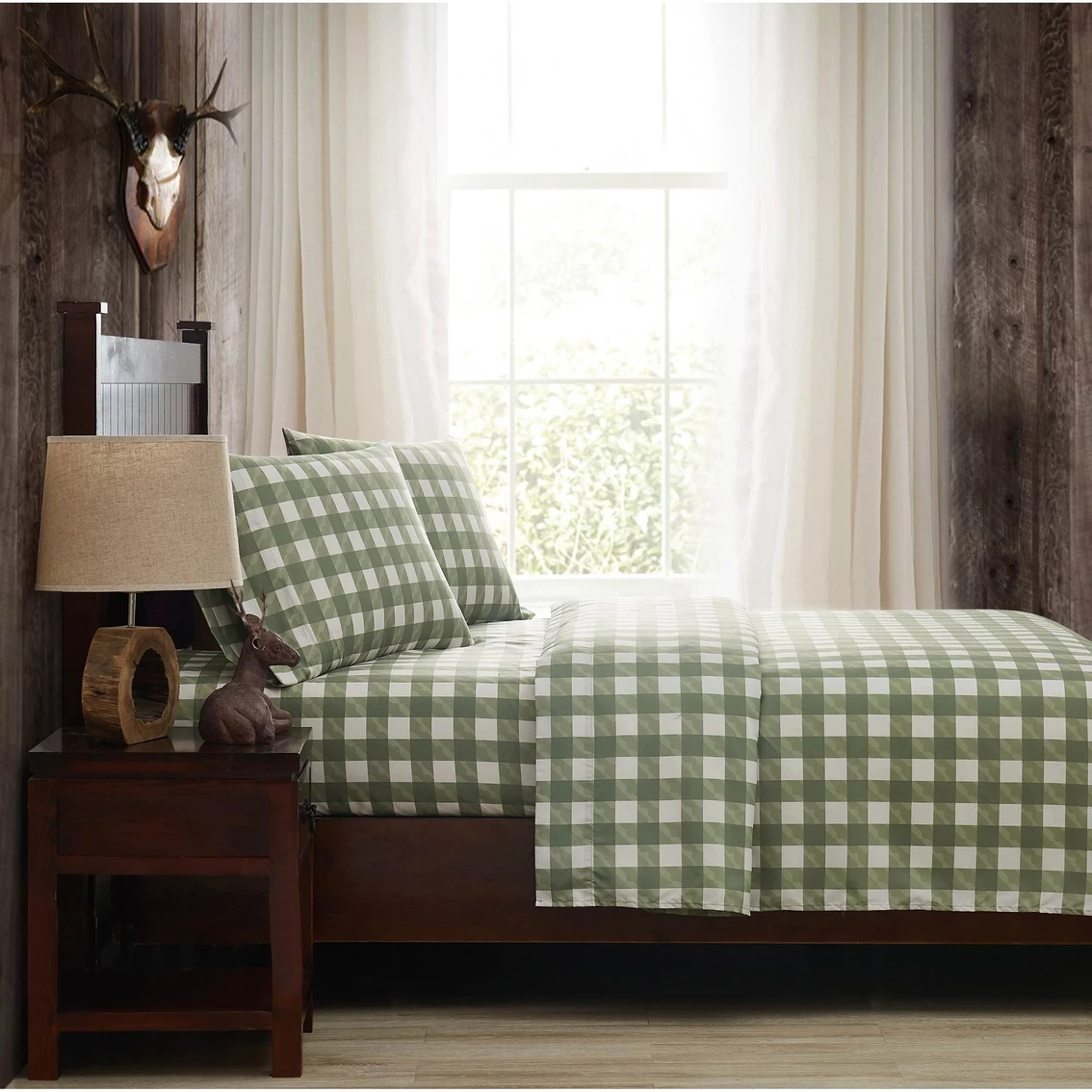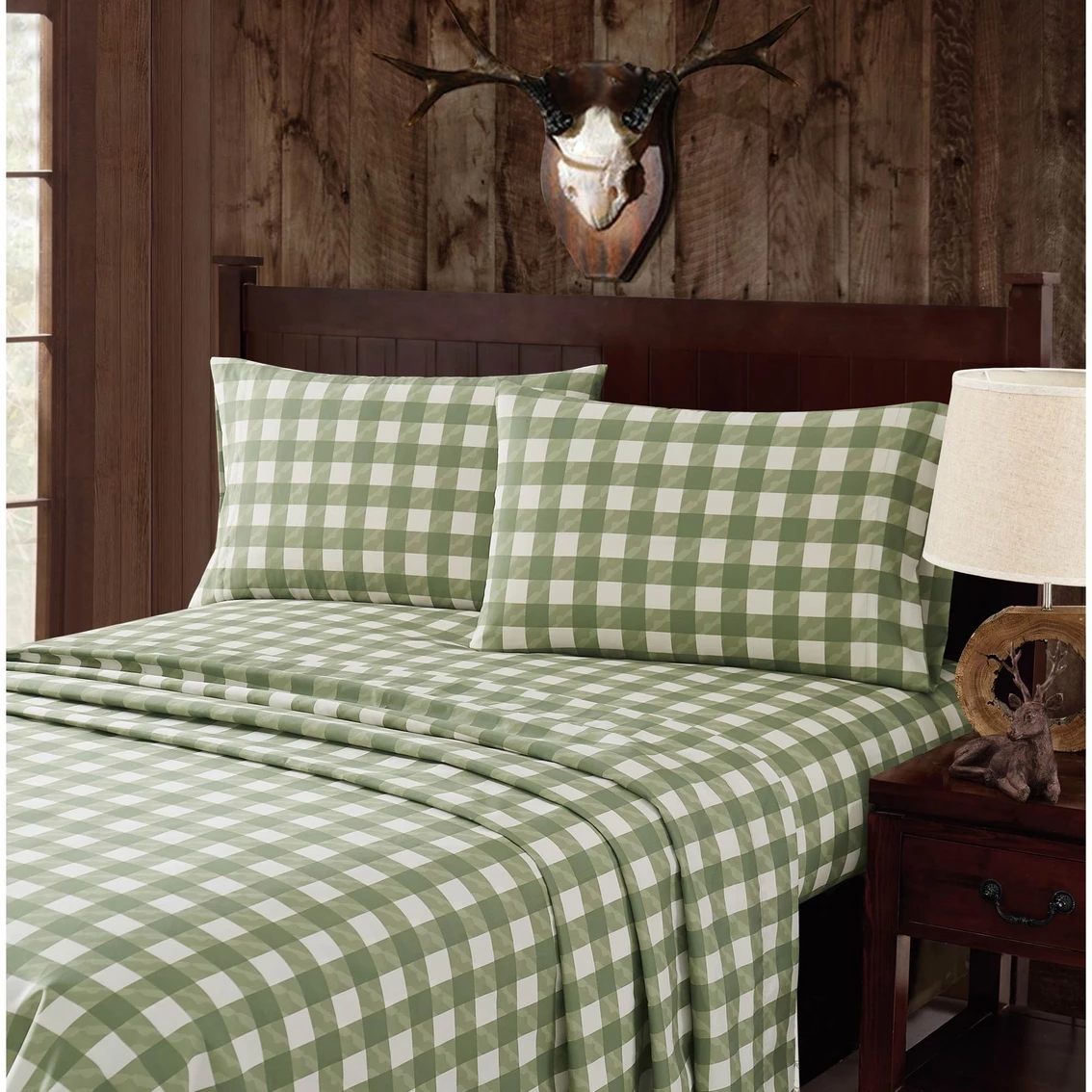 Mossy Oak Nativ Living is for those who are drawn to the beauty of nature and whose passion for the outdoors inspires them to bring those elements into their home. Using textures, colors, elements and designs inspired by nature, Mossy Oak Nativ Living offers a variety of products to complement any cabin, home or lodge. This sheet set features a classic plaid pattern with light camo motifs in shades of green and white printed on our specially garment washed fabric. Not only does the garment washing process make these sheets feel softer, it gives them a stylish, lived-in look. The microfiber fabric makes this set easy to clean and wrinkle resistant. Style: SS4387DPQN-4706.