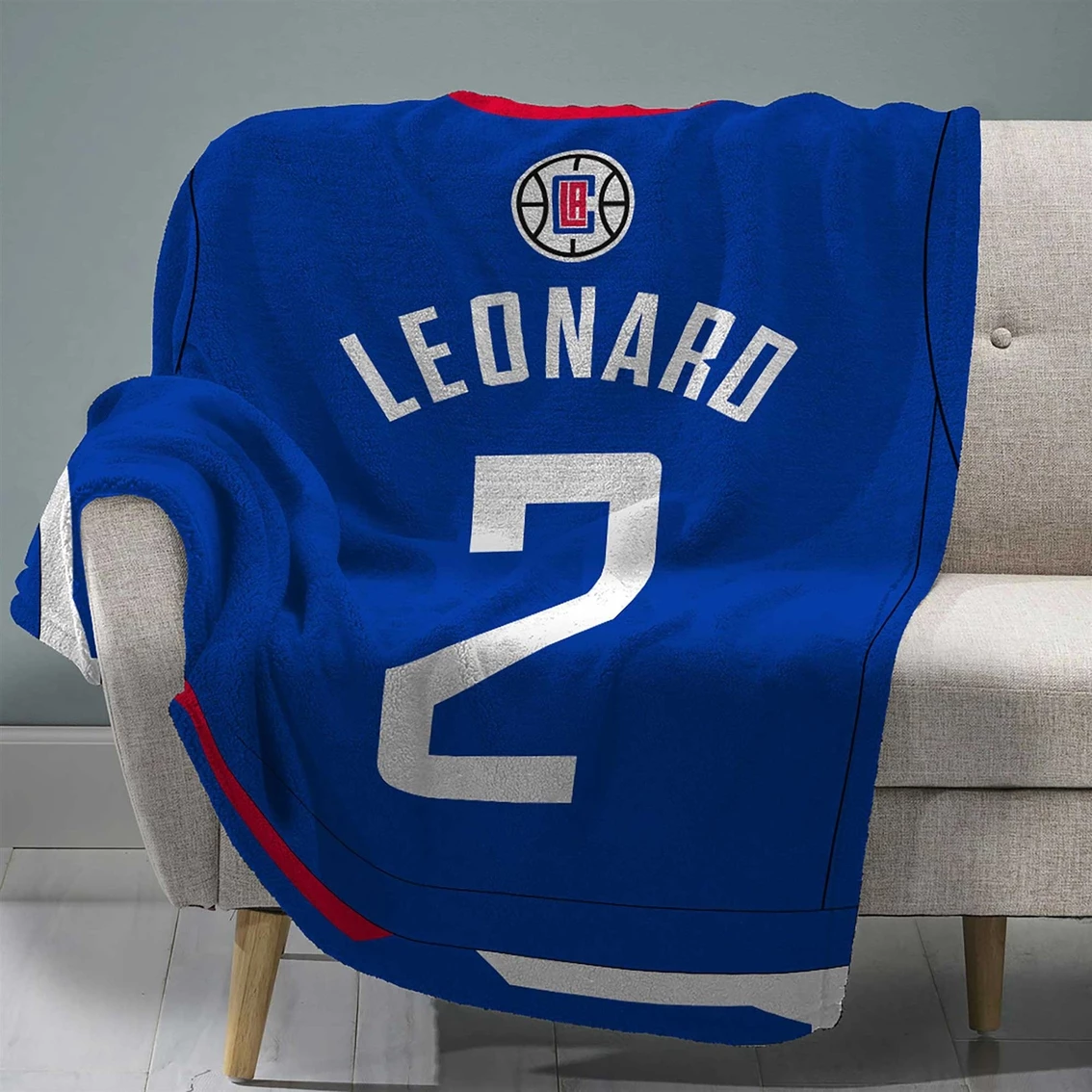 A slam dunk super soft throw. Sleep Squad jersey blankets feature a dynamic graphic design with authentic logos from the team style guides. This Los Angeles Clippers Kawhi Leonard jersey throw blanket is 60 x 80 inches, made with super-soft Rachel knit for a soft and luxurious feel and 100% polyester. Machine wash and dry. Officially licensed by the NBA, NBA Players and the Los Angeles Clippers. Great for chilling on the couch while watching the game, picnics, camping, or just covering up while catching a nap. The size allows this throw to be used as a twin size bedspread. Makes a great gift for any fan. Style: T8-NBP-CLI-KLE.