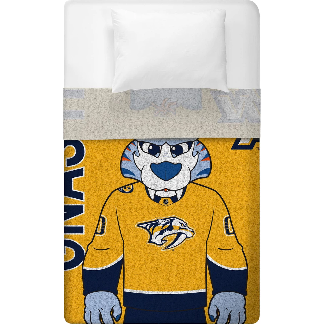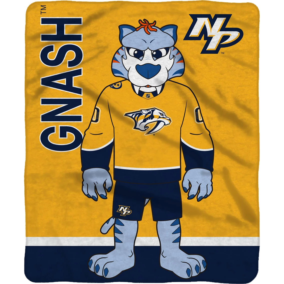 This NHL Hockey Nashville Predators Gnash mascot throw blanket is made with super-soft Rachel knit with a soft and luxurious feel. Throw is officially licensed by the NHL and the Nashville Predators. Great for picnics, camping and chilling on the couch while watching the Predators. The 60 x 80 in. size allows this throw to be used as a twin size bedspread.