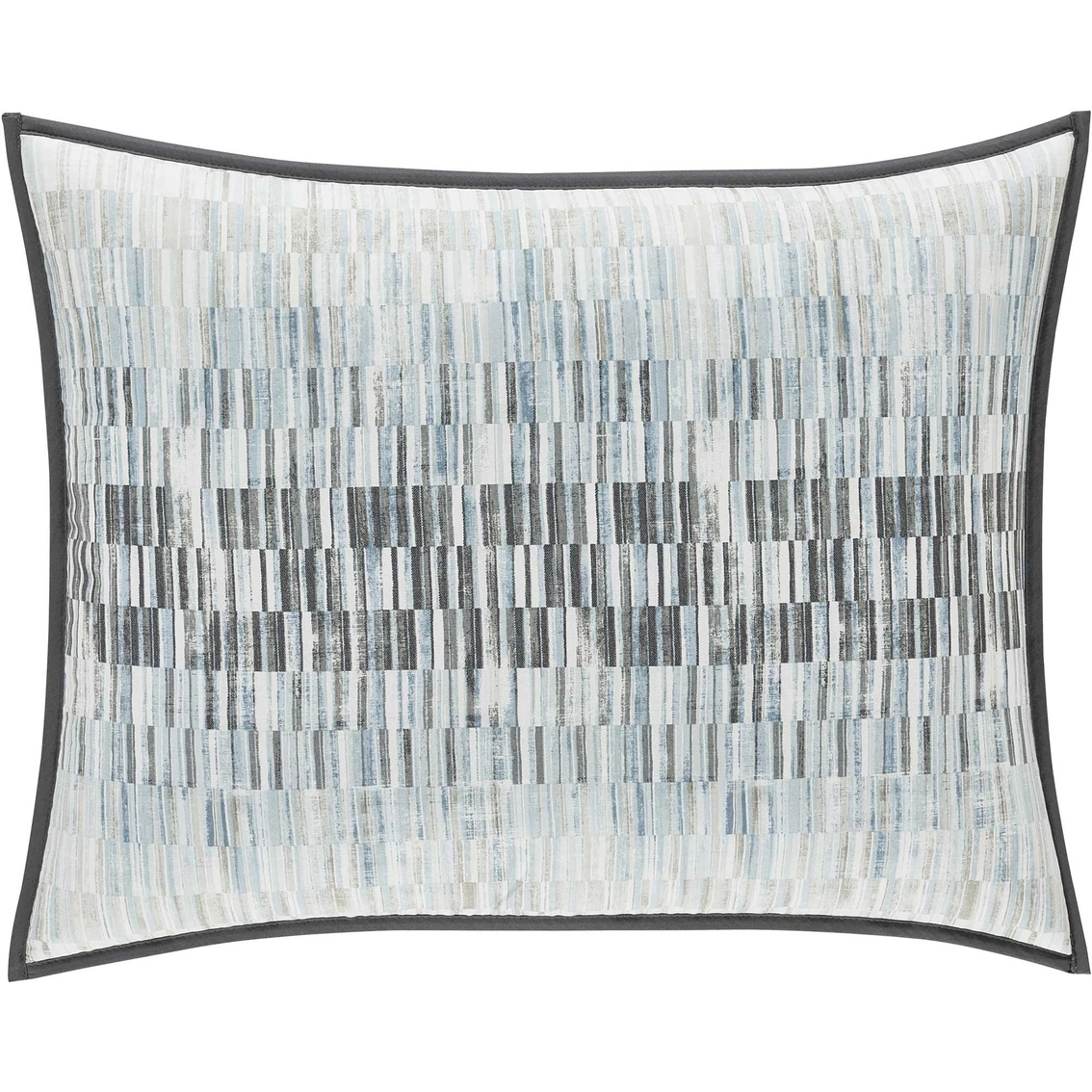 Update your bedding with the modern style of the Oscar Oliver Flatiron Pillow Sham. This collection features a textured geometric print with a gradated mix of natural, earthy textures in neutral hues of tan, charcoal and soft blues. The shams are reversible with both sides printed on 100% brushed cotton twill, and finished with .25-in. grey cotton binding. Includes: 1 Standard Sham. Model: 2394026STSHM.