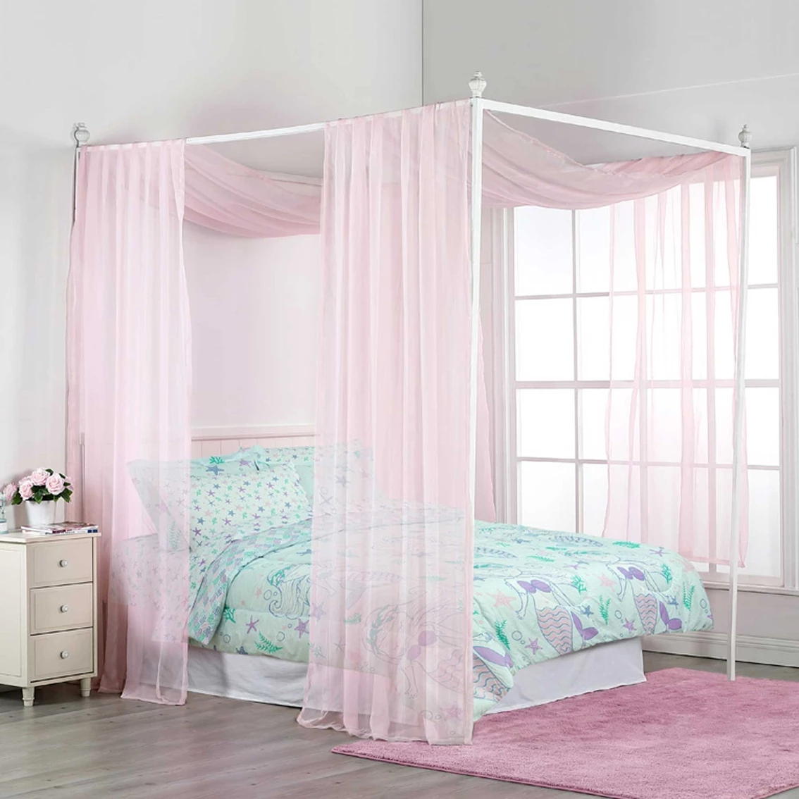 Update your existing canopy bed with this dreamy scarf. You are a few minutes away from creating a romantic retreat in your own bedroom. You will sleep well and dream happy surrounded by this luxurious bed scarf. This beautifully designed bed scarf will enhance your bedroom’s decor by providing a luxurious drape for your canopy bed. You can turn your bedroom into the palace you’ve always dreamed of. Simple Setup: All you need to do is drape the scarf over the top of your bed to create a dreamy look for your bedroom. 1 Bed scarf measures 50 in. wide by 256 in. long. Model: 07A93F26-151-0050.