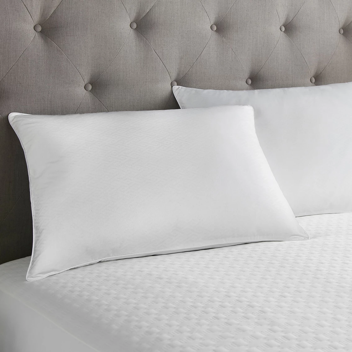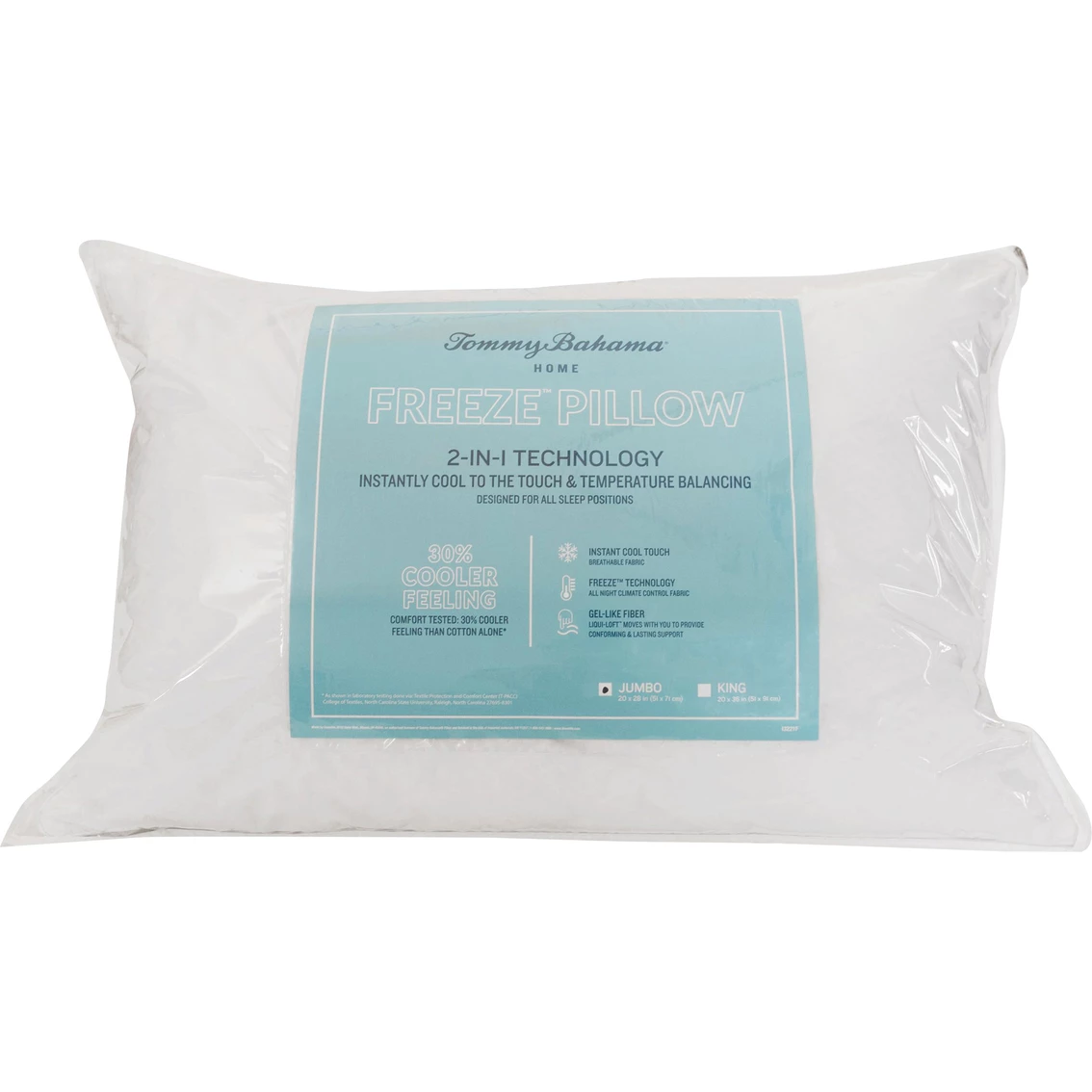 Tommy Bahama knows how to keep you cool and comfortable! This new and improved Freeze down alternative pillow features cotton fabric treated with an Diamond print pattern application of our coolest feeling phase change material (PCM). No cooling pillow technology will be ice cold all night, but for the first 15-20 minutes and when you change sleeping positions you will feel a big difference in your pillows. 230 thread count cotton fabric